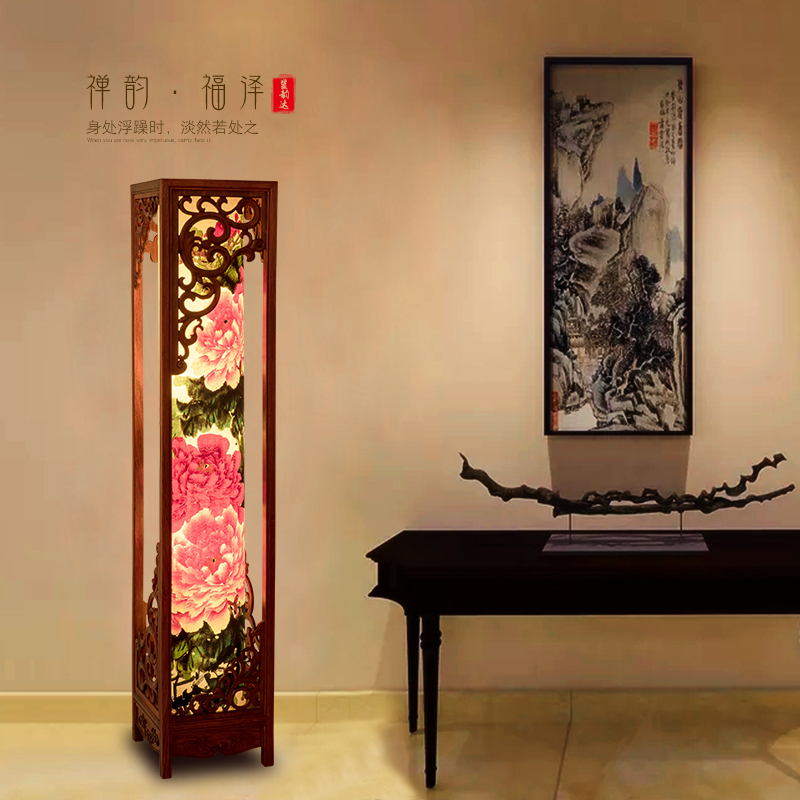 新中式书房客厅卧室闪电客床头复古中国风古典灯具创意纸灯罩调光落地灯