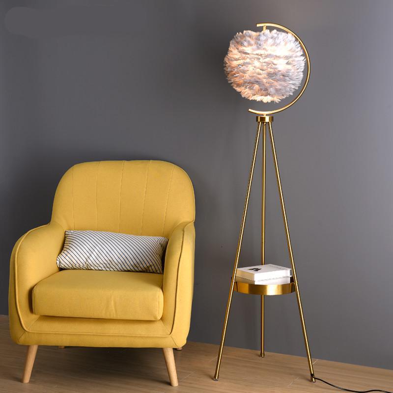 羽毛落地灯客厅卧室公主北欧轻奢网红ins少女房间闪电客床头装饰铜台灯