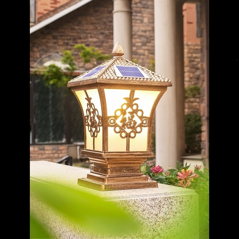 太阳能柱头灯古达户外防水庭院别墅墙头围墙大门灯大气家用门柱灯