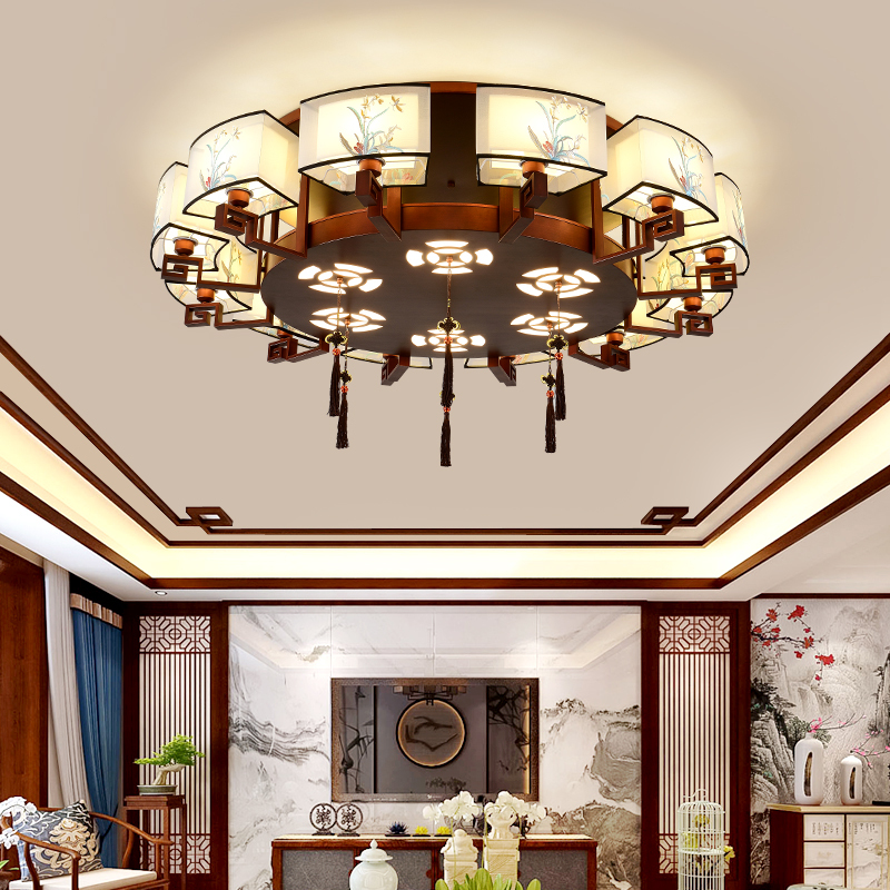 克罗斯塔 新中式吸顶灯中国风复古刺绣方形大气客厅灯简约家用卧室餐厅灯
