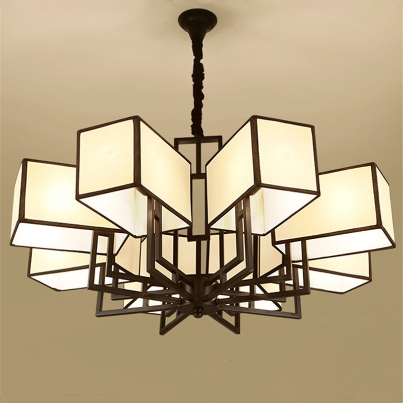 现代新中式吊灯客厅酒店工程灯新古典别墅复式楼铁艺中式灯具古铜色哑光黑色铁艺中式吊灯复古清明新古典后现代茶楼中餐厅灯饰