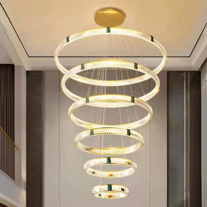 中空大厅吊灯现代轻奢挑空跃层客厅灯别墅水晶复式旋转楼梯大吊灯