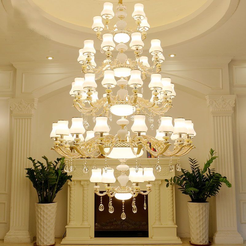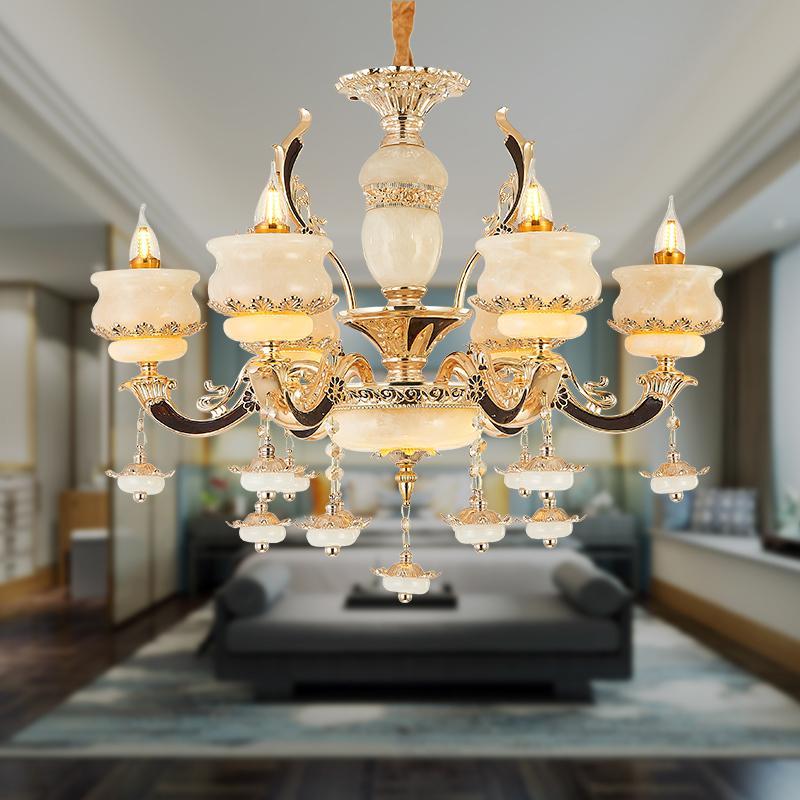 - 欧式天然白玉吊灯闪电客 客厅水晶灯别墅复式楼灯具卧室餐厅蜡烛灯