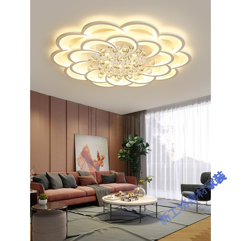 - 客厅大灯水晶灯现代简约大气家用轻奢灯具2020新款圆形卧室吸顶灯