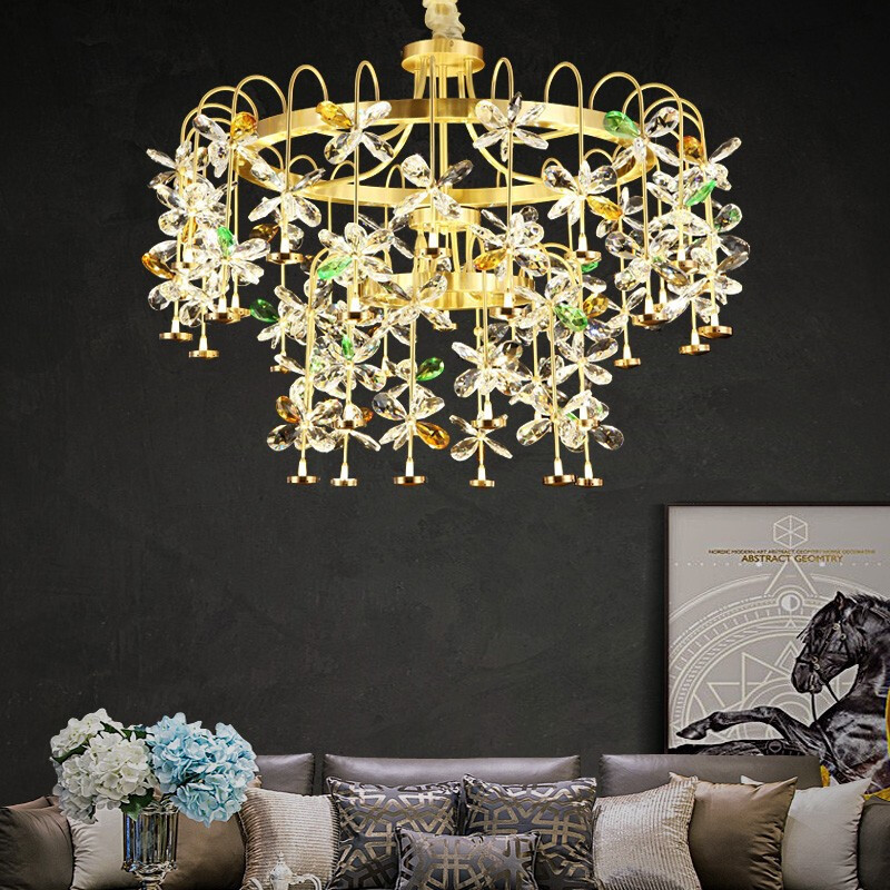 - 澳松 后现代轻奢水晶吊灯时尚大气全铜客厅灯个性创意花瓣水晶灯简约别墅餐厅卧室样板间led家用灯具